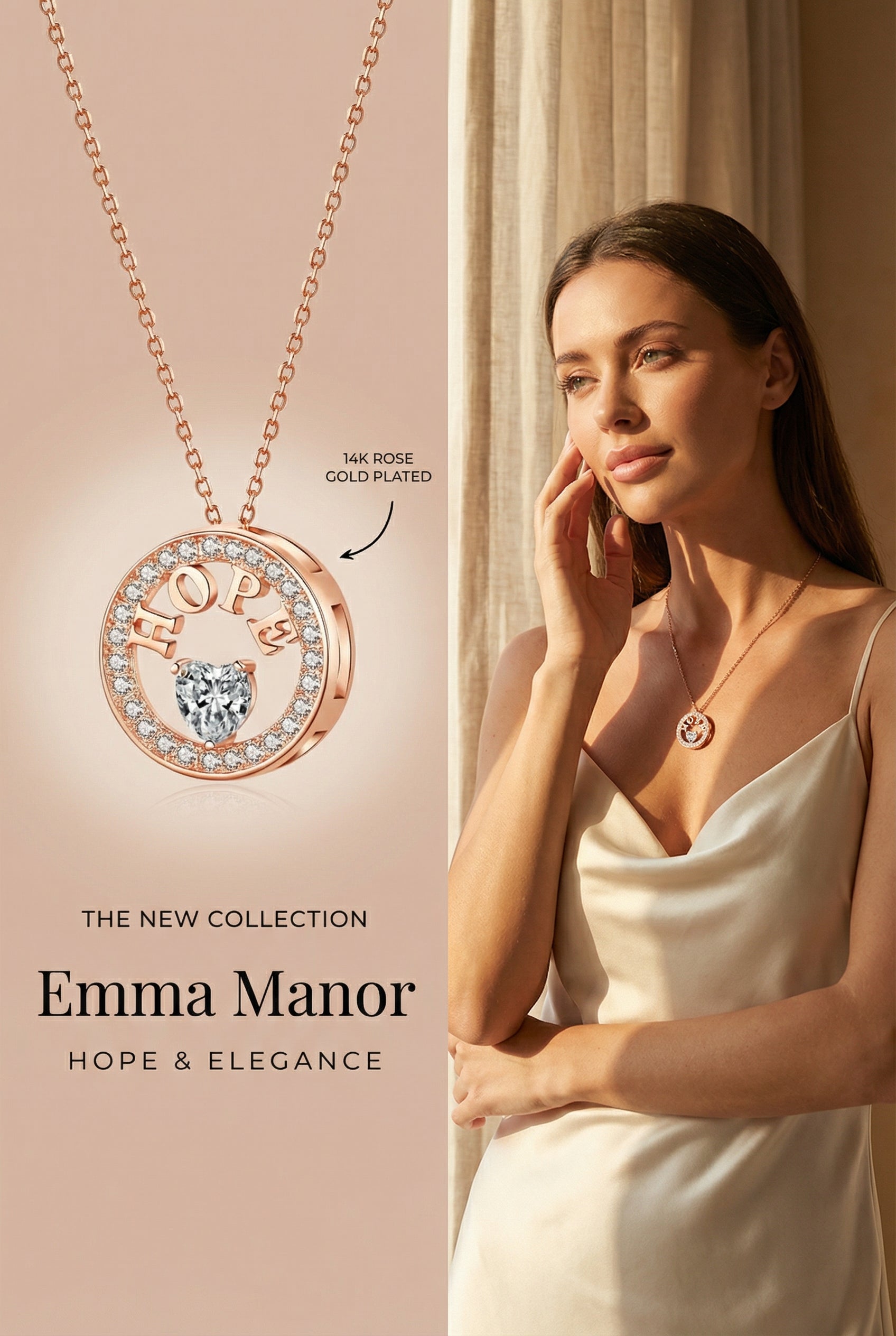 Emma Manor Necklace For Women 18k Gold Plated 925 Silver 5A Zirconia Diamond Hope Pendant Necklace